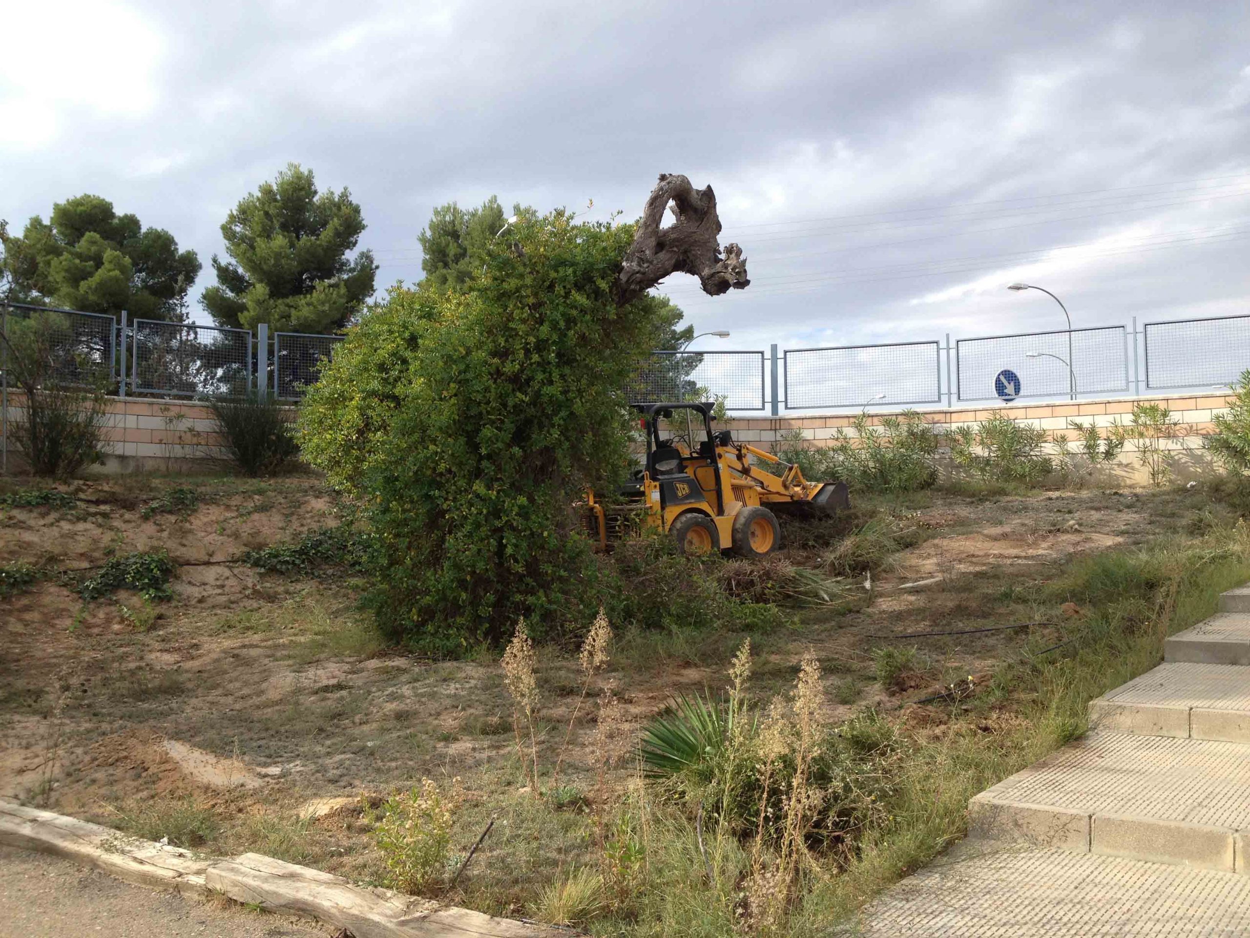 En la entrada de las oficinas, existía un árbol muerto y como de un traje se tratase , se desnudo de los restos de pieles.